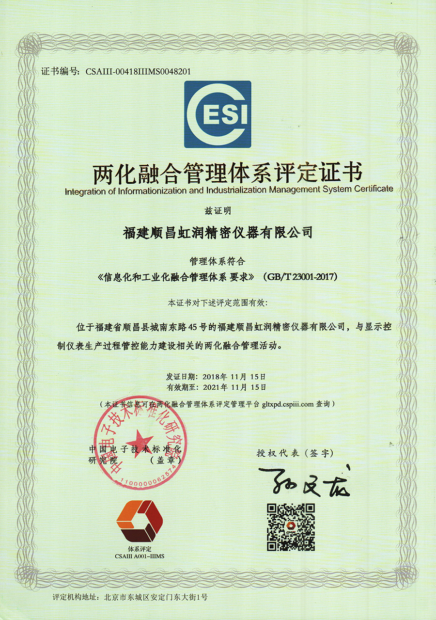 近年來,虹潤公司積極響應(yīng)國家號召,堅持走“專業(yè)化、精細化、特色化、新穎化”的專精特新發(fā)展道路,邁出了可喜的步伐。公司是國家高新技術(shù)企業(yè)、國家級知識產(chǎn)權(quán)優(yōu)勢企業(yè)、福建省戰(zhàn)略性新興產(chǎn)業(yè)骨干企業(yè)、福建省科技小巨人領(lǐng)軍企業(yè),和上海理工大學(xué)莊松林院士合作建立了院士專家工作站,擁有500多項國家專利及100多項軟件著作權(quán)。主持或參與制定了56項國家標(biāo)準,嚴格按照ISO9001標(biāo)準建立了質(zhì)量管理體系,“虹潤”商標(biāo)被國家工商局認定為“中國馳名商標(biāo)”。獲得工信部兩化融合管理體系認證、歐盟CE認證,國際SIL功能安全認證,國家防爆證。公司先后研發(fā)出了數(shù)顯表與溫控器、無紙記錄儀、隔離器與安全柵、溫度變送器、壓力變送器、電量表與變送器、電能質(zhì)量分析儀、過程校驗儀、可編程控制器、環(huán)境監(jiān)測儀表等十大系列高新技術(shù)產(chǎn)品,為用戶提供了技術(shù)含量高、品質(zhì)一流的優(yōu)質(zhì)產(chǎn)品和服務(wù),受到了用戶的廣泛贊譽。