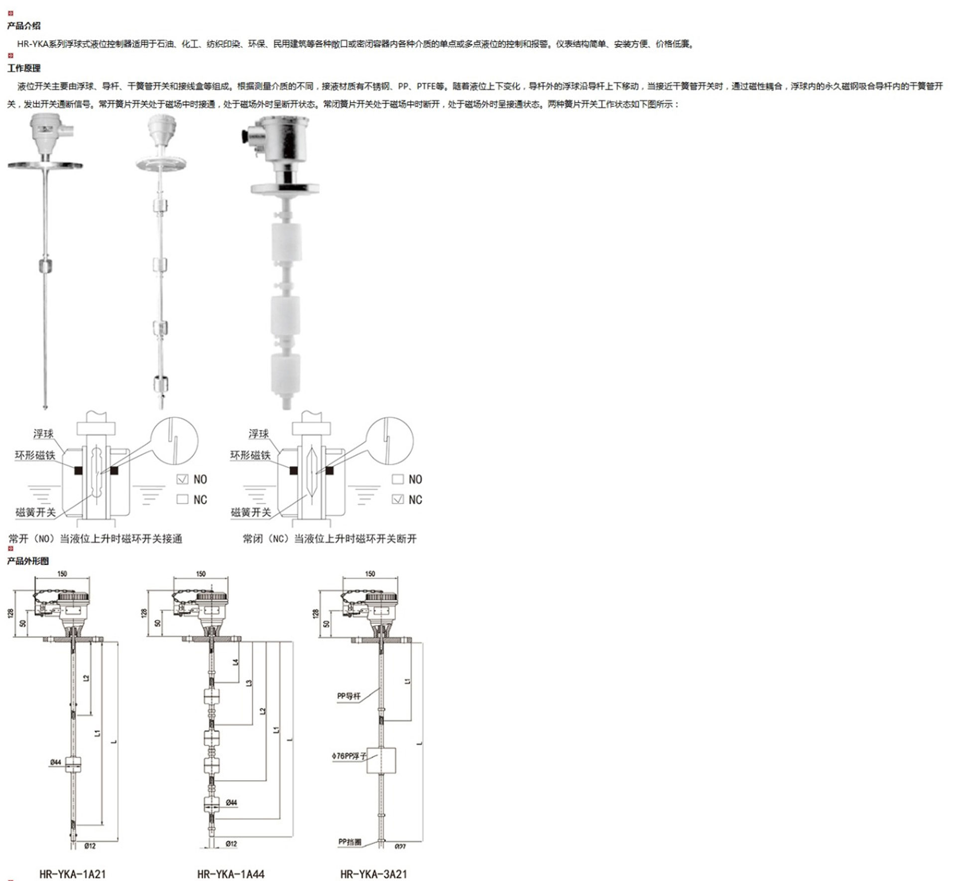 HR-YKA系列浮球式液位控制器適用于石油、化工、紡織印染、環(huán)保、民用建筑等各種敞口或密閉容器內(nèi)各種介質(zhì)的單點(diǎn)或多點(diǎn)液位的控制和報警。儀表結(jié)構(gòu)簡單、安裝方便、價格低廉。