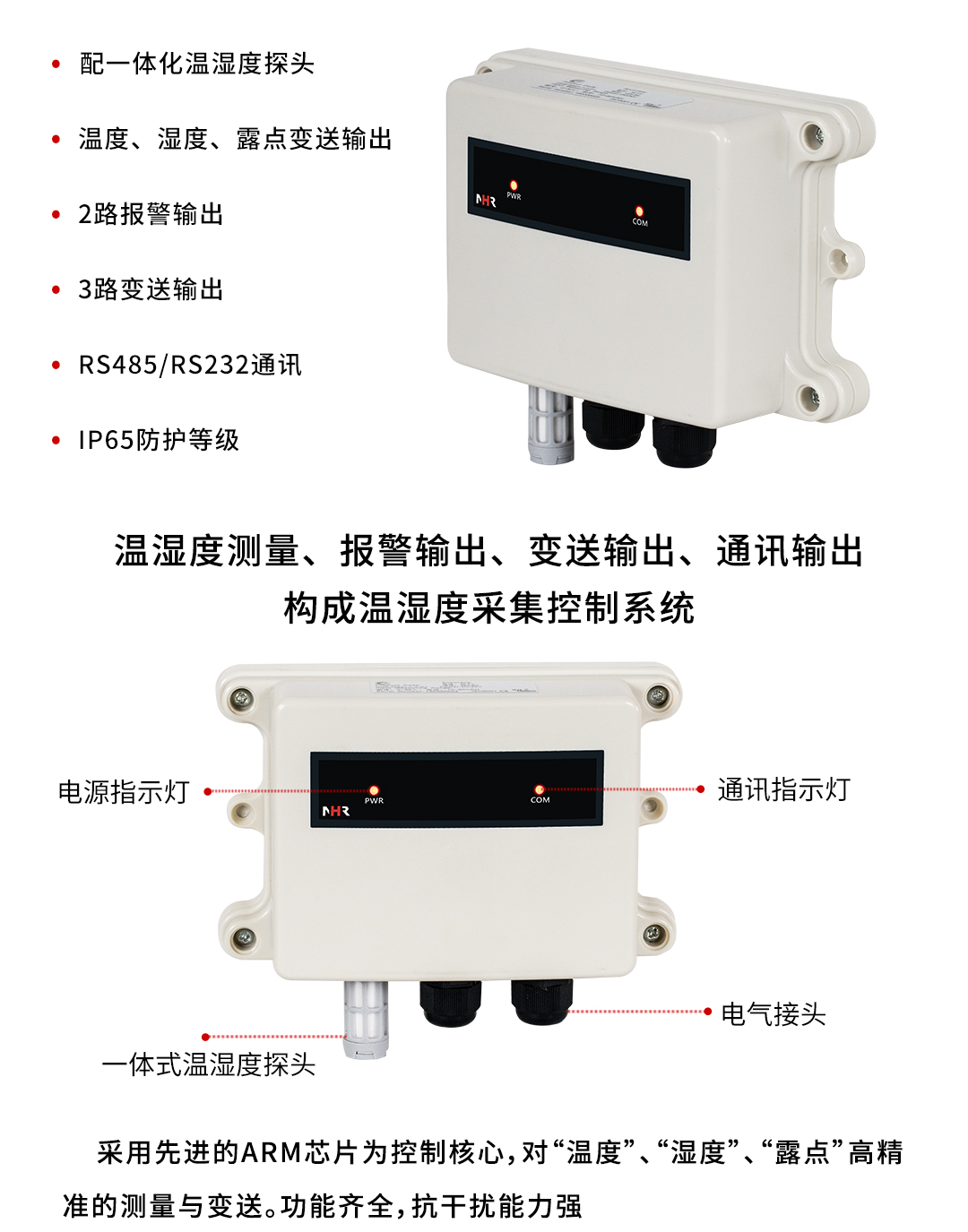 NHR-WS20系列一體化溫濕度變送器電路采用進口微處理器芯片、進口高精度溫濕度傳感器,確保溫濕度變送器優(yōu)異的可靠性。它具有精度高、穩(wěn)定性強、響應(yīng)速度快等特點,可同時對被測環(huán)境的溫度、濕度進行測量和控制。適用于通訊機房、辦公室、醫(yī)院、檔案館、博物館、賓館、樓宇自控等場所的溫濕度測量。