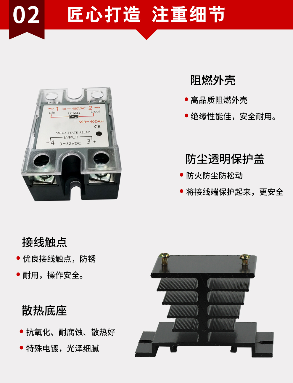 OHR-SSR固態(tài)繼電器尺寸小巧,內(nèi)置壓敏電阻及阻容吸收回路,具有吸收電網(wǎng)尖峰電壓抗干擾能力??赏ㄟ^動(dòng)作指示燈來檢查工作狀態(tài),寬電壓輸出,可達(dá)到AC38-480V,低觸發(fā)電流小干8mA。