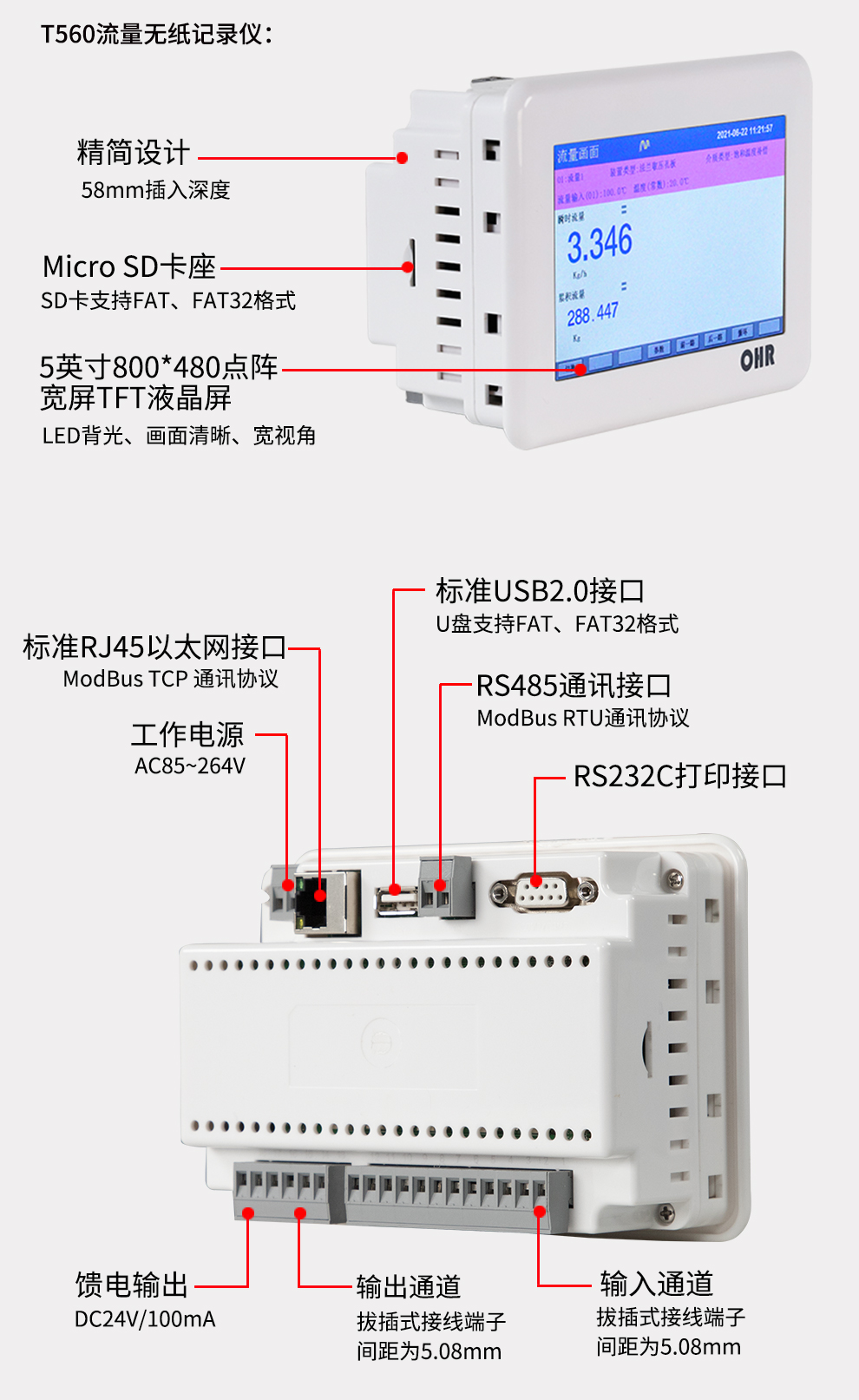 OHR-T系列觸摸超薄流量無紙記錄儀