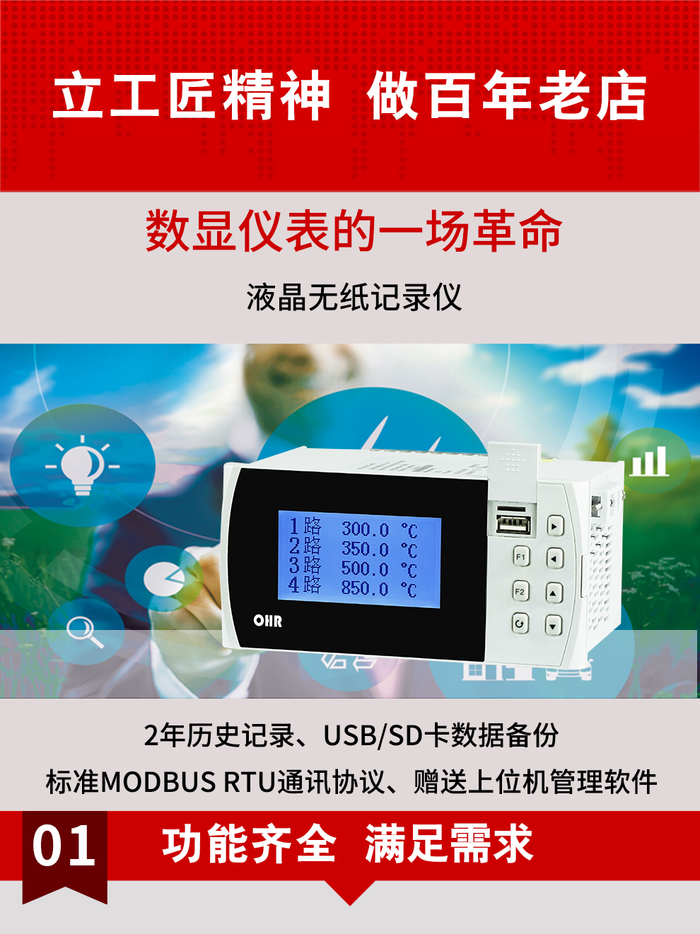 OHR-G100/G100R系列液晶漢顯控制儀/無紙記錄儀是一種智能化的多功能二次儀表,適用于對各種過程參量進(jìn)行監(jiān)測、控制、記錄與遠(yuǎn)傳。