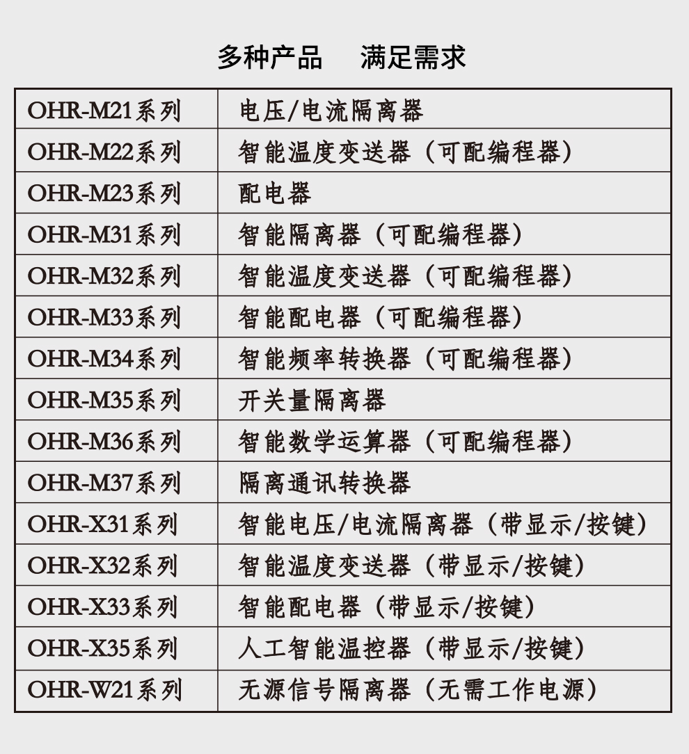 OHR-M21系列電壓/電流隔離器將直流電壓或電流信號經(jīng)過隔離傳送,轉(zhuǎn)換成所需的信號給其它儀表。可以與單元組合儀表及DCS、PLC等系統(tǒng)配套使用,給予現(xiàn)場儀表信號隔離、信號轉(zhuǎn)換、信號分配、信號處理等,從而提高工業(yè)生產(chǎn)過程自動控制系統(tǒng)的抗干擾能力,保證系統(tǒng)的穩(wěn)定性和可靠性。