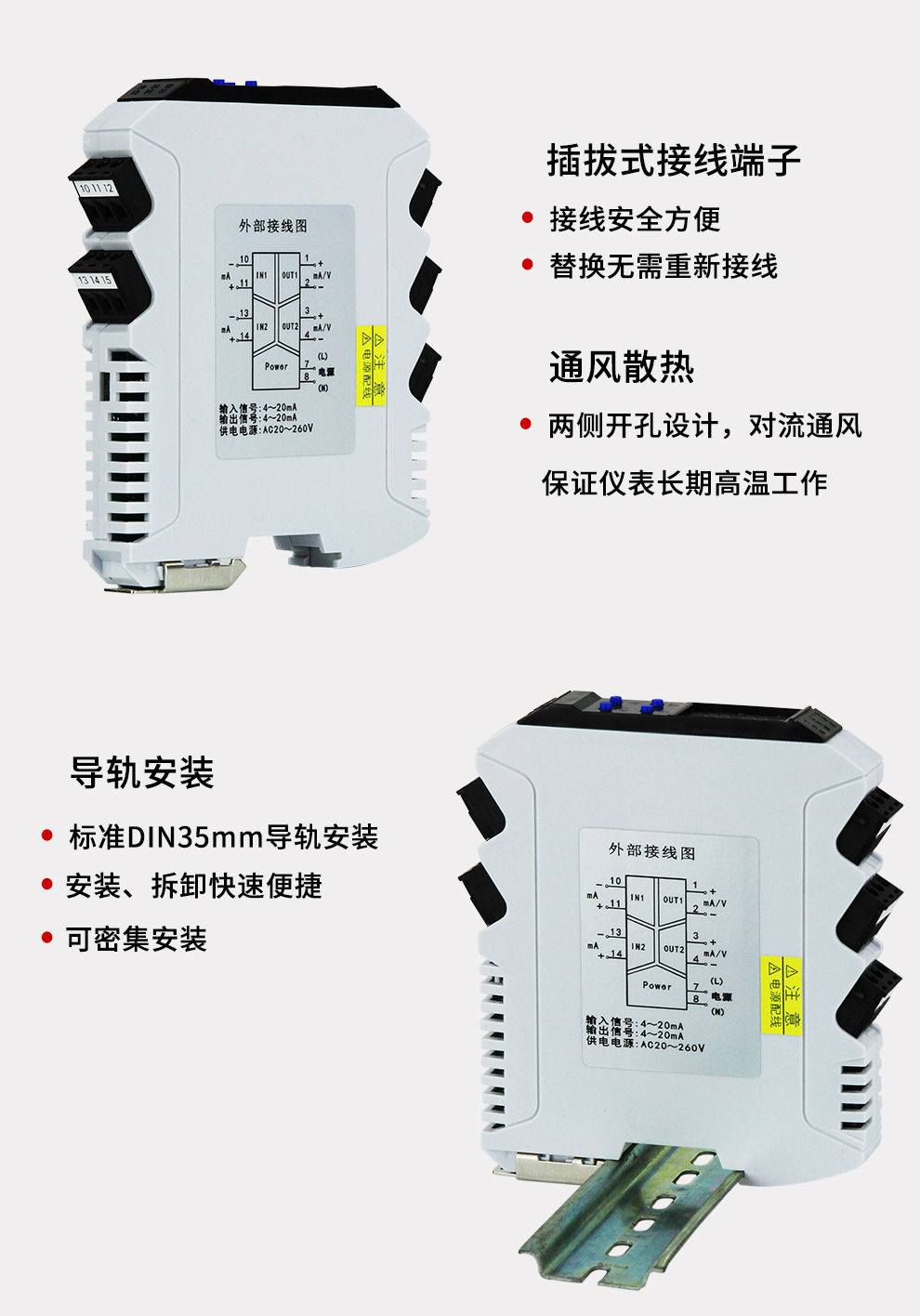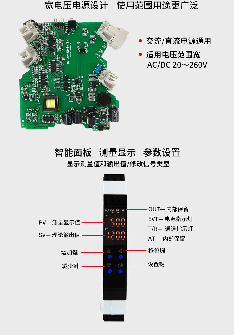 OHR-X31系列導軌式智能隔離器將現場的直流電壓或電流信號經過隔離傳送,轉換成所需的信號給其它儀表??梢耘cDCS、PLC等系統(tǒng)配套使用,從而提高工業(yè)生產過程自動控制系統(tǒng)的抗干擾能力,保證系統(tǒng)的穩(wěn)定性和可靠性。寬電源設計:20-260V交直流供電。配置高清顯示單元,通過輕觸按鍵設置每個通道的參數及通道之間的切換。