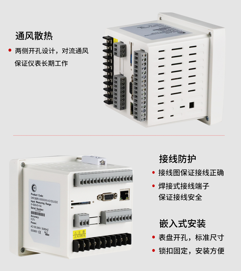 OHR-C900系列電能質量分析記錄儀采用新進的集成電路及數(shù)字采樣技術,對三相電氣線路中的交流電流/電壓、 有功功率、無功功率、視在功率、功率因數(shù)、工頻周波、諧波、有功電能、無功電能、四象限電能、波峰系數(shù) 及不平衡度等進行實時測量顯示與在線分析。
