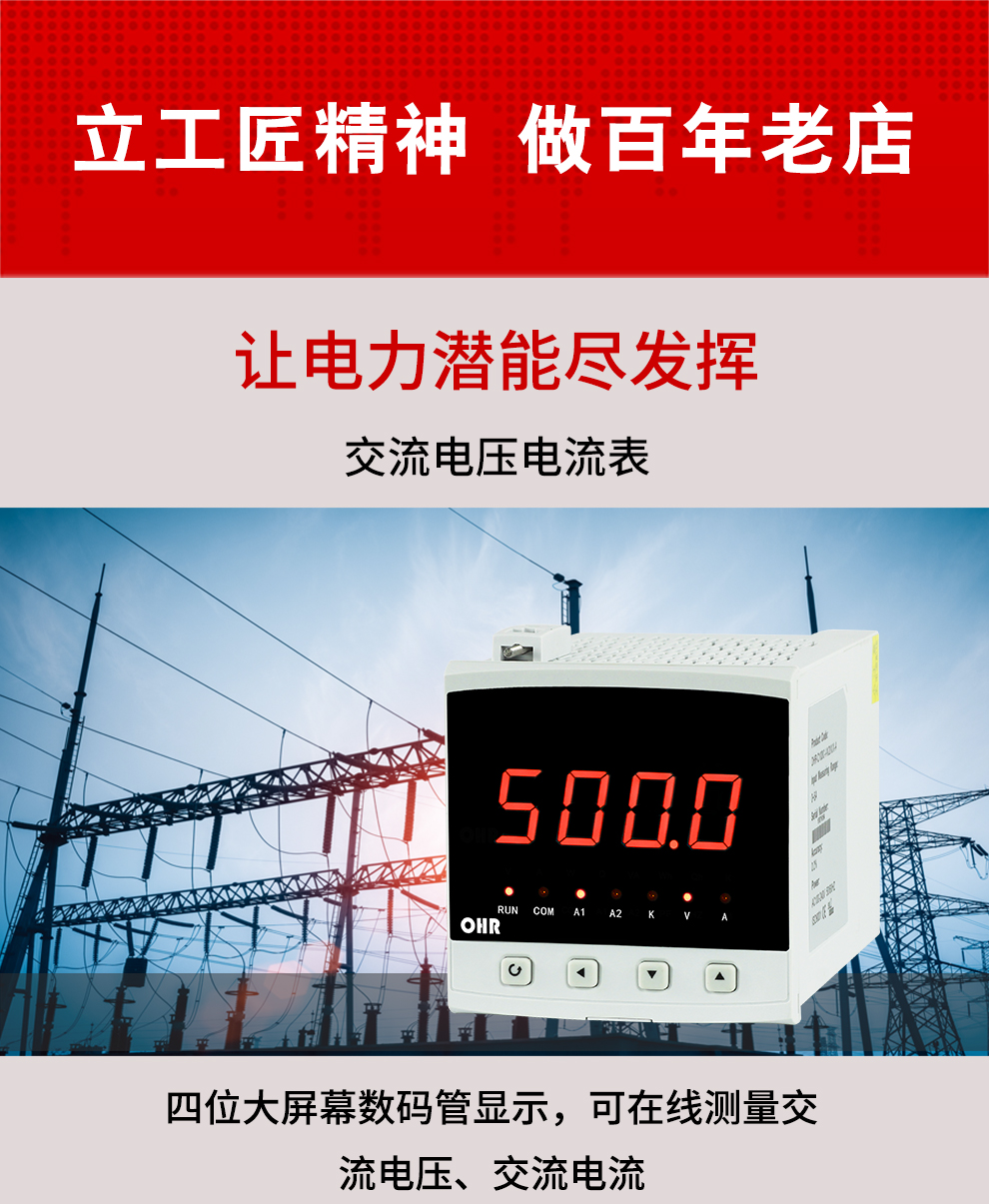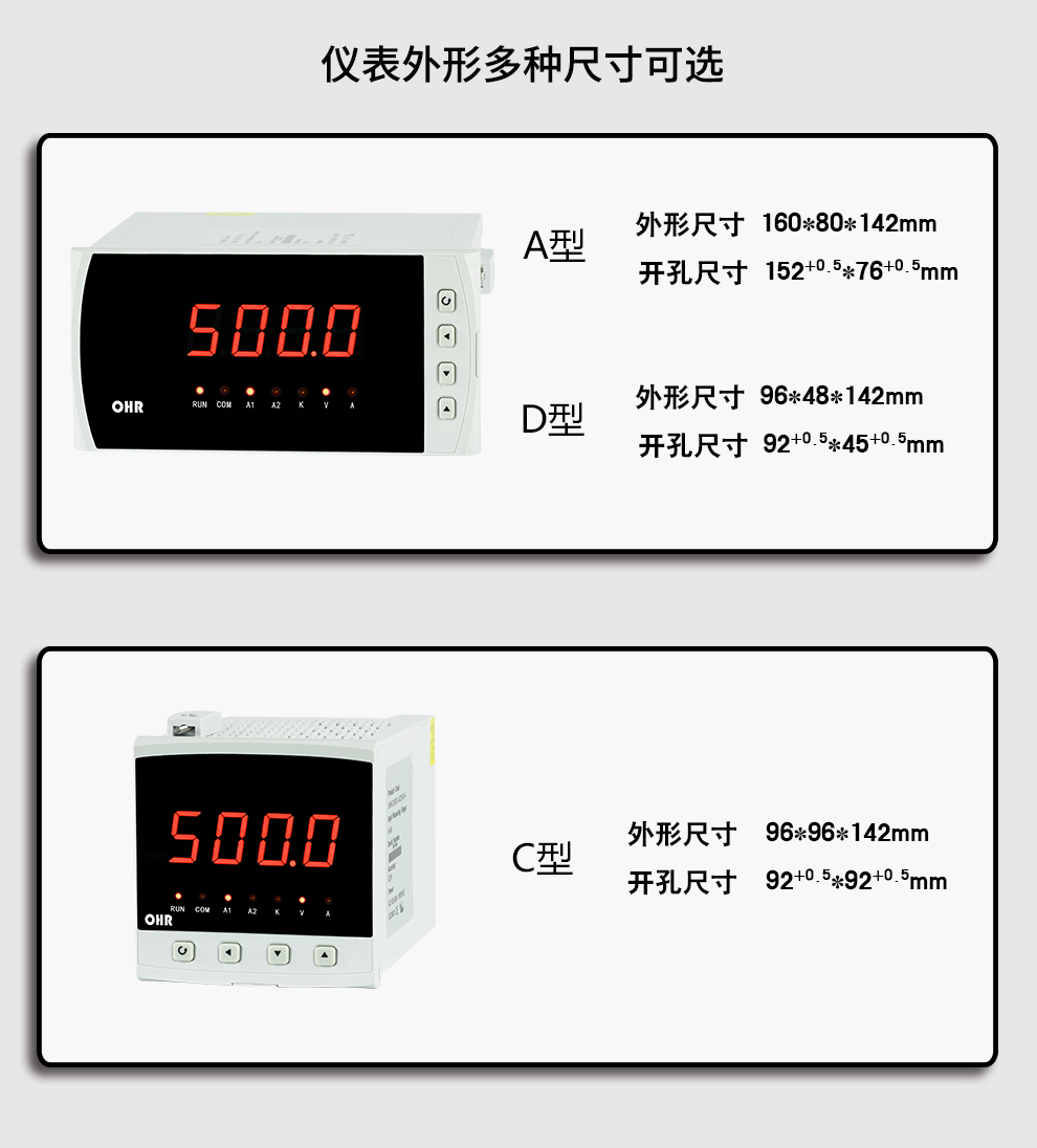 OHR-C200系列交流電壓/電流表為新 一代可編程智能儀表,它采用大規(guī)模集成電路,應用數(shù)字采樣技術,對單相電氣線路中的電壓、電流進行實時測量、顯示和控制,并通過RS485接口或模擬量變送輸出接口對被測量電量數(shù)據(jù)進行遠傳。