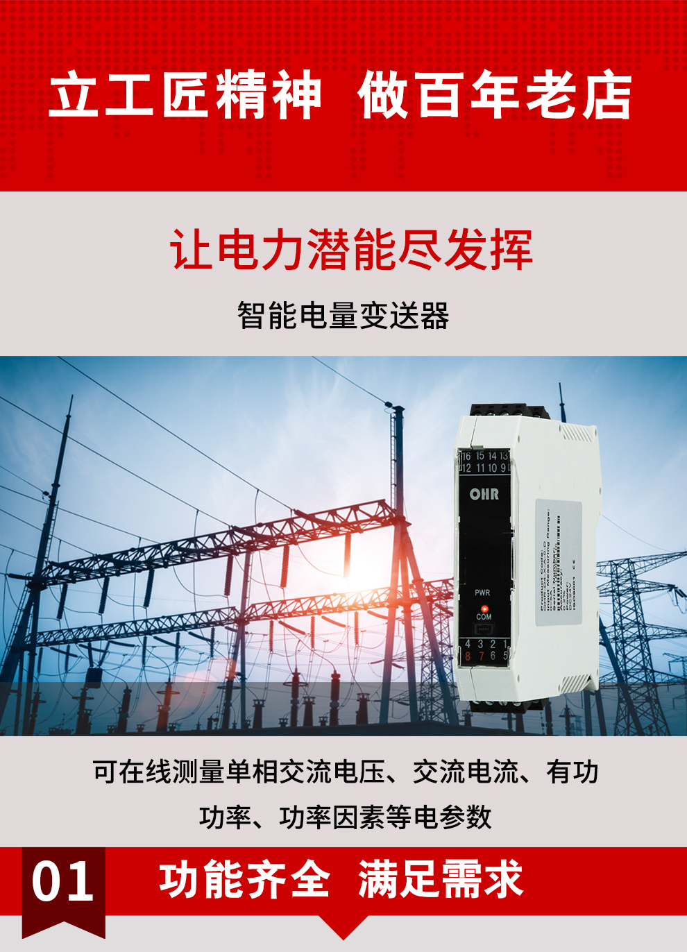 OHR-D4系列智能電量變送器是一款高性價(jià)比的智能電參數(shù)變送器,它能替代過去傳統(tǒng)的電流、電壓、功率、 功率因數(shù)、電量等一系列變送器,降低系統(tǒng)成本,方便現(xiàn)場(chǎng)布線并提高系統(tǒng)的可靠性。