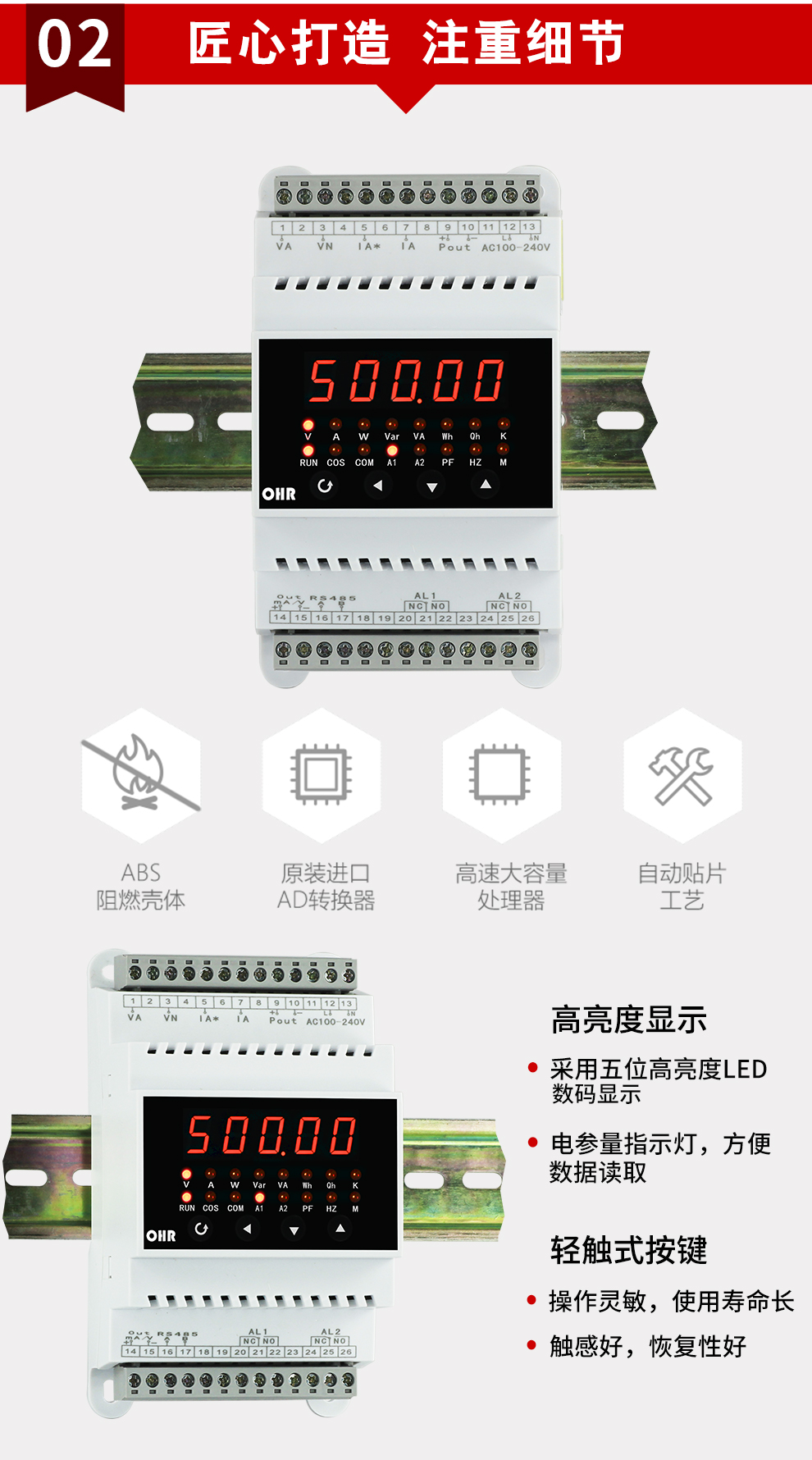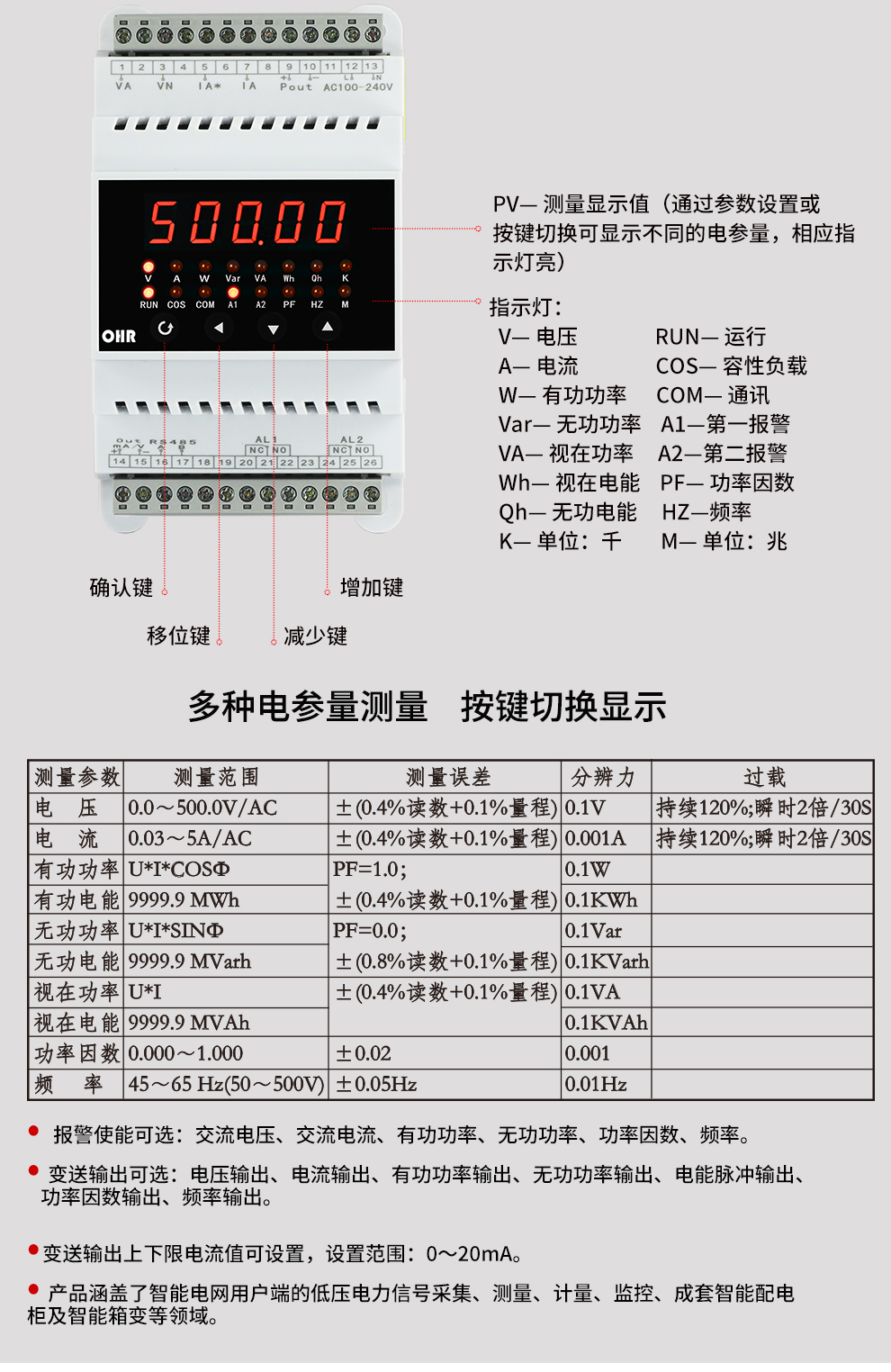 OHR-D13系列單相LED顯示智能電量變送器是一款高性價(jià)比的智能電參數(shù)變送器,采用大規(guī)模集成電路,以低功耗的微處理器為核心,帶五位LED數(shù)碼顯示及報(bào)警指示燈指示,配備按鍵操作更加方便。
