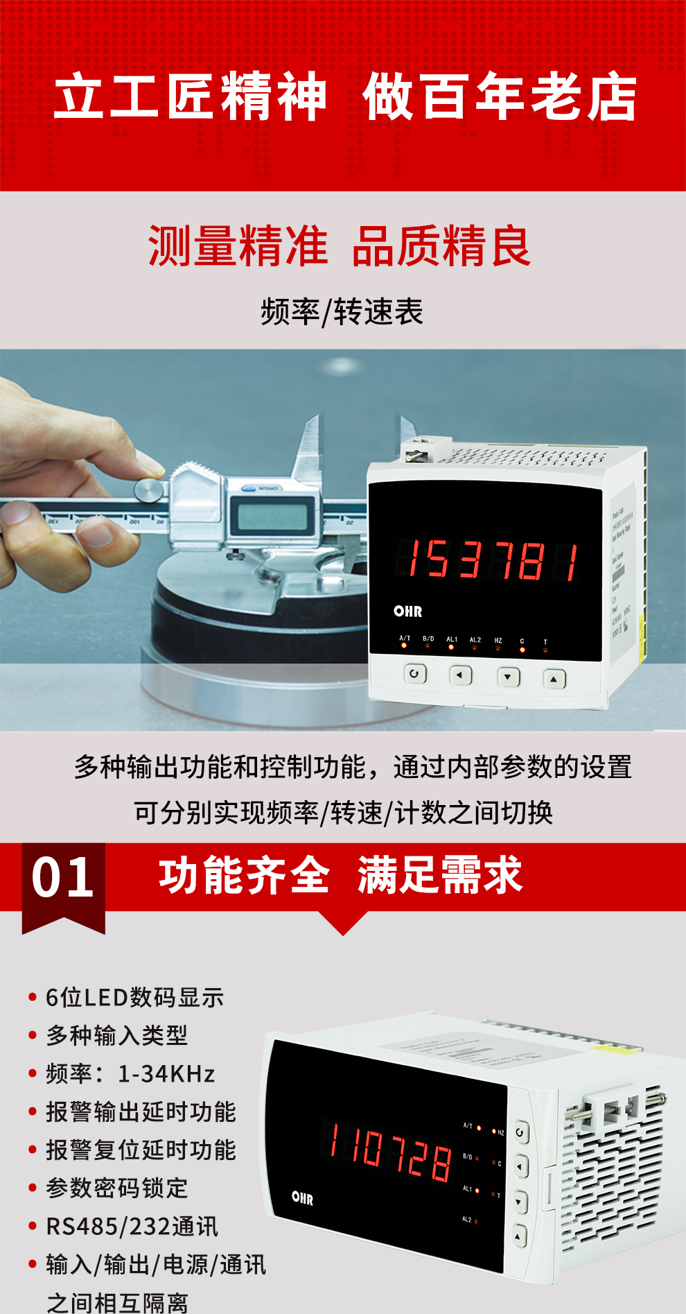 OHR-B400系列頻率/轉(zhuǎn)速表采用全自動貼片封裝工藝,具有很強的抗干擾能力,并具有多種輸出功能和控制功能,與多種轉(zhuǎn)速傳感器配套,廣泛運用于電力、石化、冶金、輕工、制藥、航空等諸多領(lǐng)域。