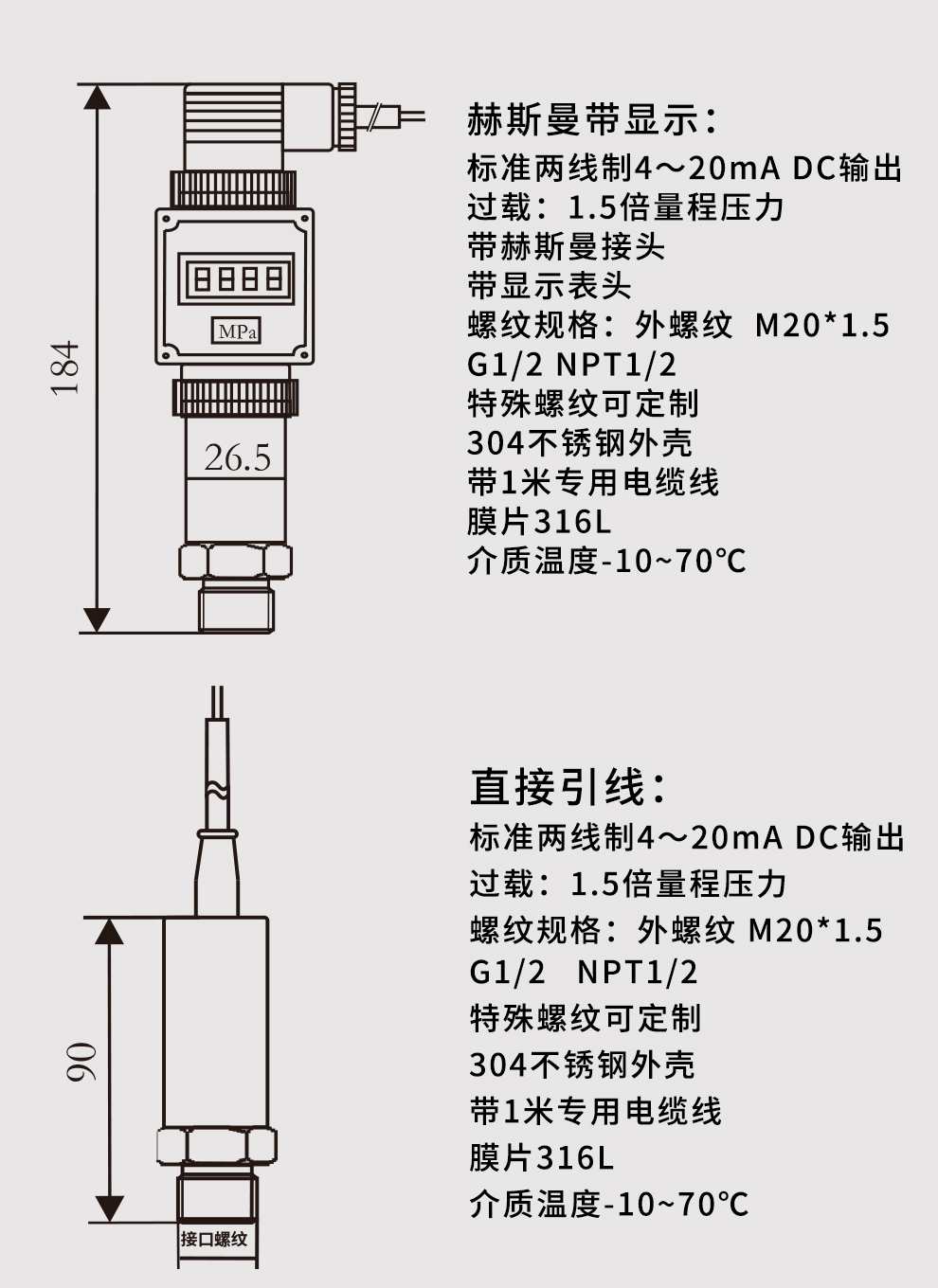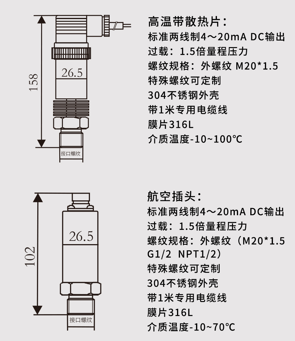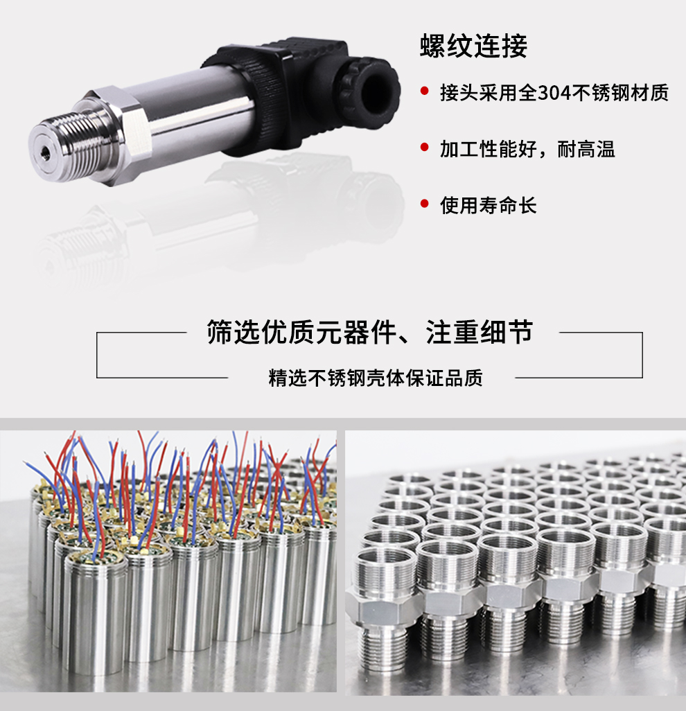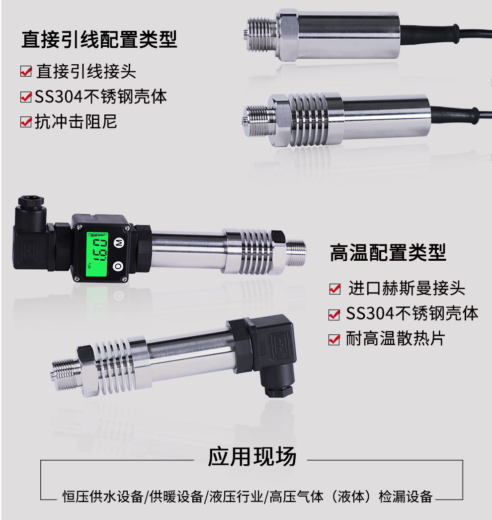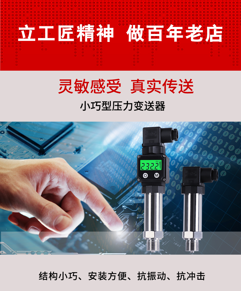 M系列小巧型壓力變送器內(nèi)部使用擴散硅壓阻式傳感器,其結(jié)構(gòu)簡單,體積小巧,易安裝;以其優(yōu)良的可靠性、適用性、靈活性和多樣性,廣泛的應(yīng)用于航空、航天、石油、化工、冶金、電力、水利等工業(yè)過程現(xiàn)場的壓力測量和控制。