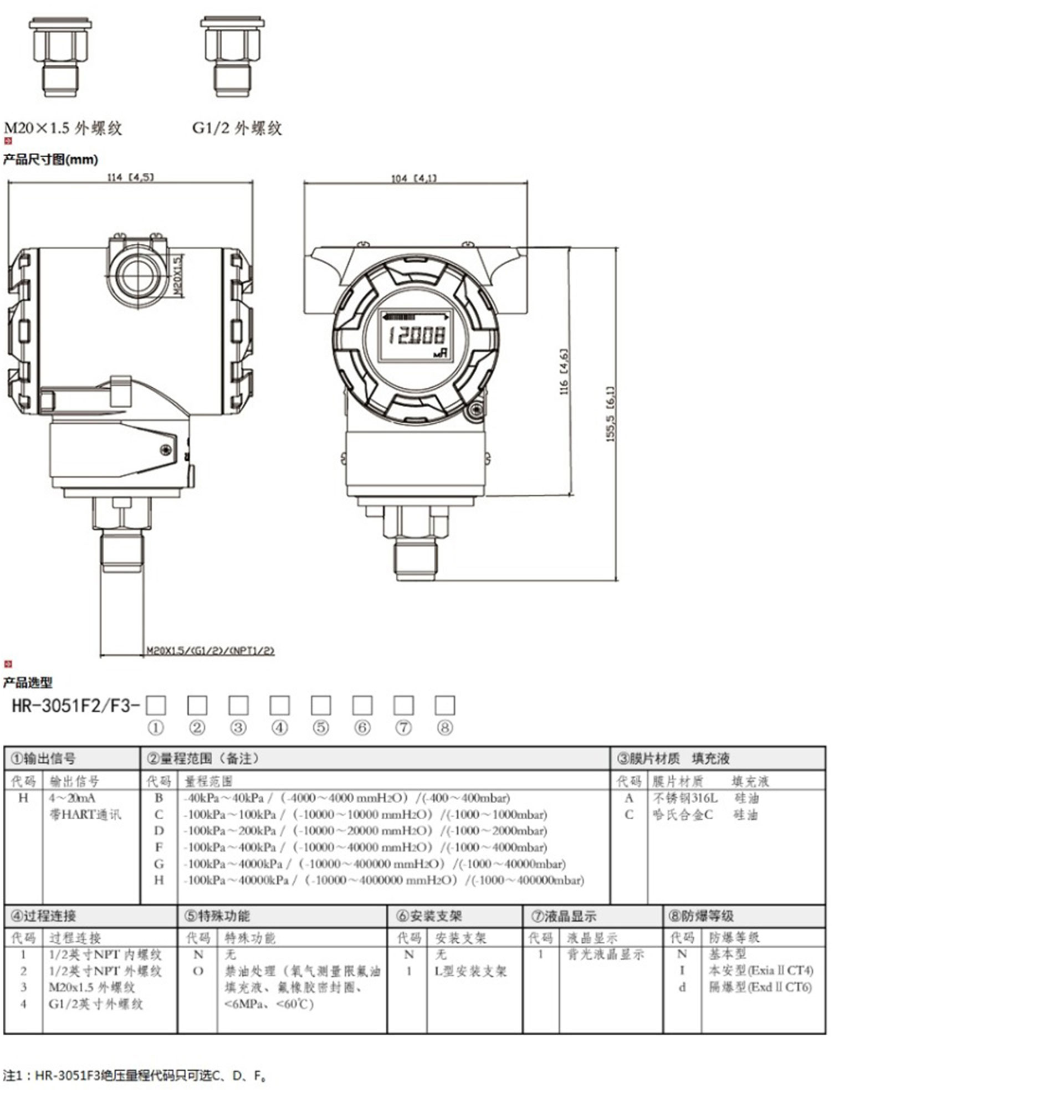 HR-3051F2/F3智能單晶硅直裝壓力變送器