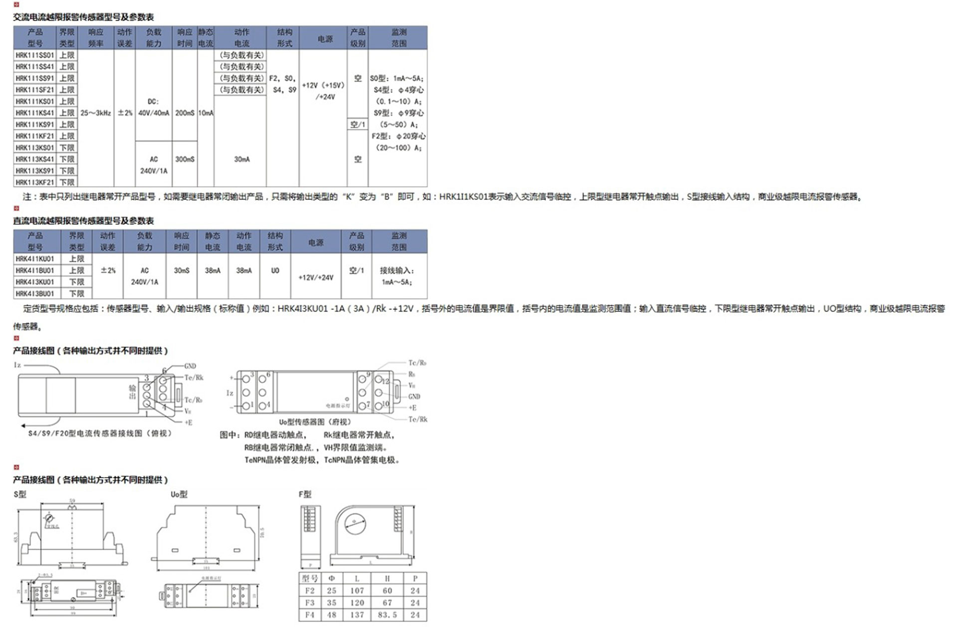 電流越限報(bào)警傳感器以HR系列電量隔離傳感器為基礎(chǔ),增配比較器電路、基準(zhǔn)電壓設(shè)定電路、輸出驅(qū)動(dòng)電路組成,用來隔離監(jiān)測主回路中的交流或直流電流,當(dāng)被監(jiān)測的電量超過預(yù)先設(shè)定的上限值,或低于預(yù)先設(shè)定的下限值時(shí),給出開關(guān)量控制信號。